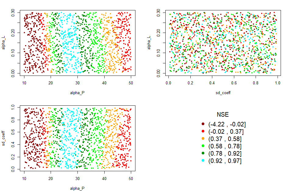 Choosing the right goodness-of-fit metric to select the best set of parameters for a model largely depends on the overall study scope, the area of interest (e.g. high or low load, upper or lower catchment area), and the available observation dataset (size and quality). The library includes a series of functions to examine the calibration results and help select the most suitable set of parameters.