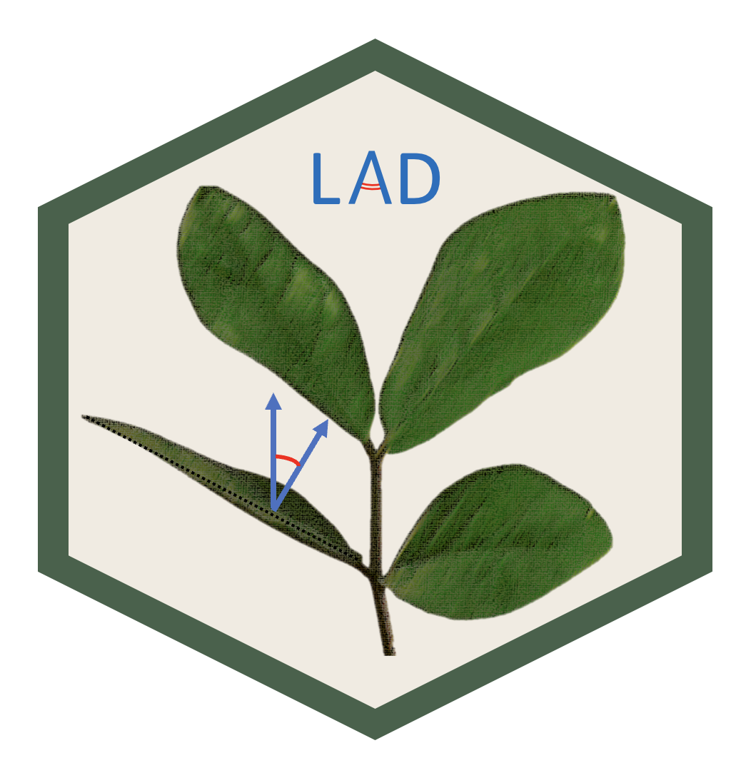 In this article we presented “LAD”, an R package to calculate the Leaf angle distribution (LAD) function and the G-function from measured leaf inclination angles.