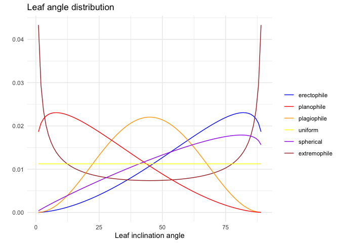 Following de Wit (1965), LAD functions can be described using six common functions based on empirical evidence of the natural variation of leaf normal distributions and mathematical considerations: