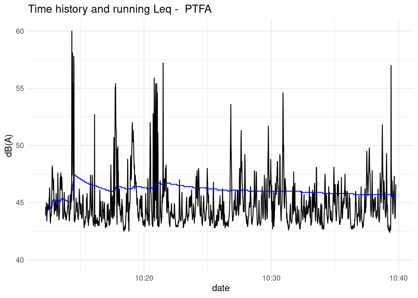 PlotNoiseTimeHistory(df = PTFA, variable = "LAeq", mp = "PTFA", y_lim = c(40, 60))
