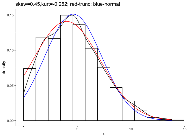 destrunc(vmean=mean(dat2), vsd=sd(dat2), lo=0, hi=14, rawdata = dat2, showFigure = TRUE)