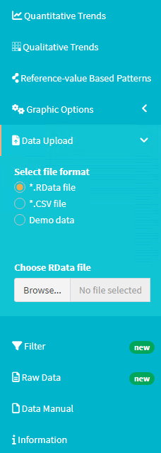 save(dat,file="elab_example.RData")This data set can then be loaded within the elaborator using the “Data Upload” functionality in the main menu on the left side of the application: