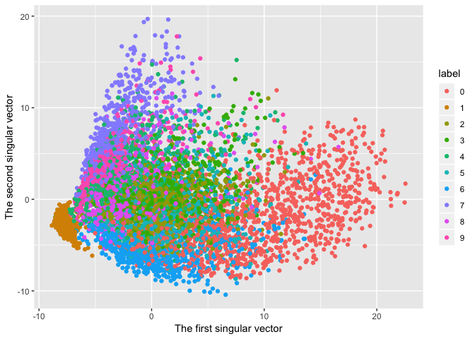 Plot the original data on the first and second singular vector plane.