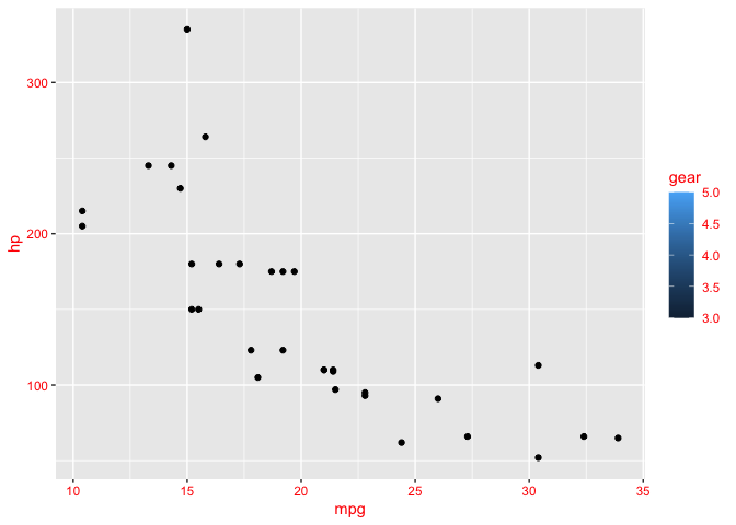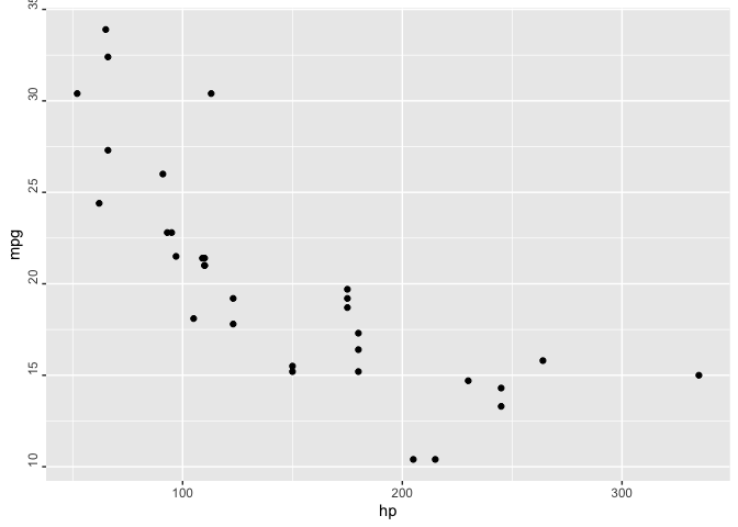 ggplot(mtcars, aes(mpg, hp)) +