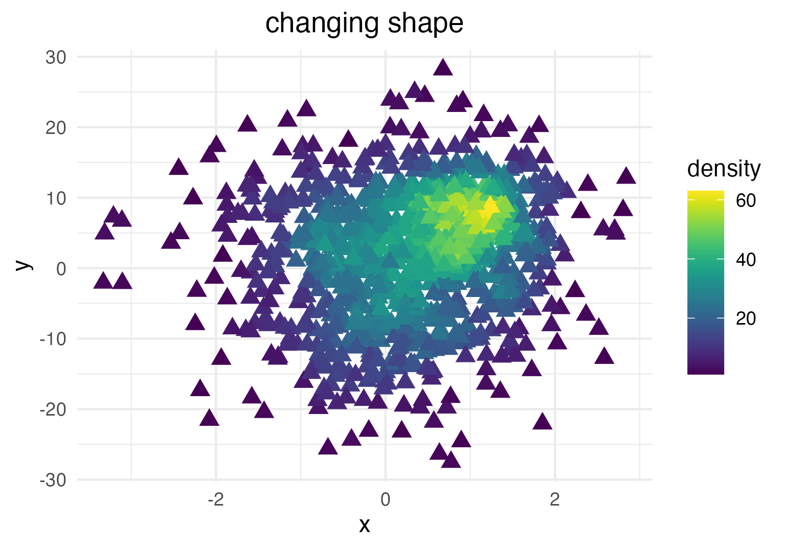 aes(x = x, y = y, size = after_stat(1 / density ^ 1.8))) +