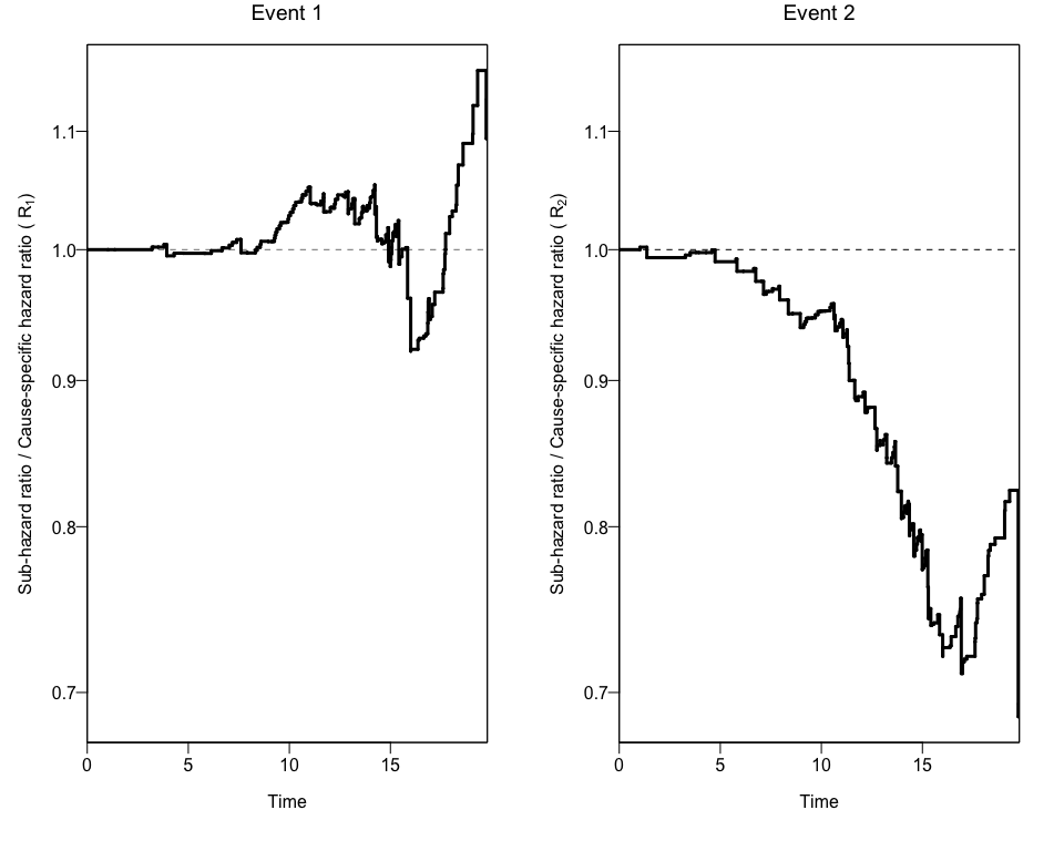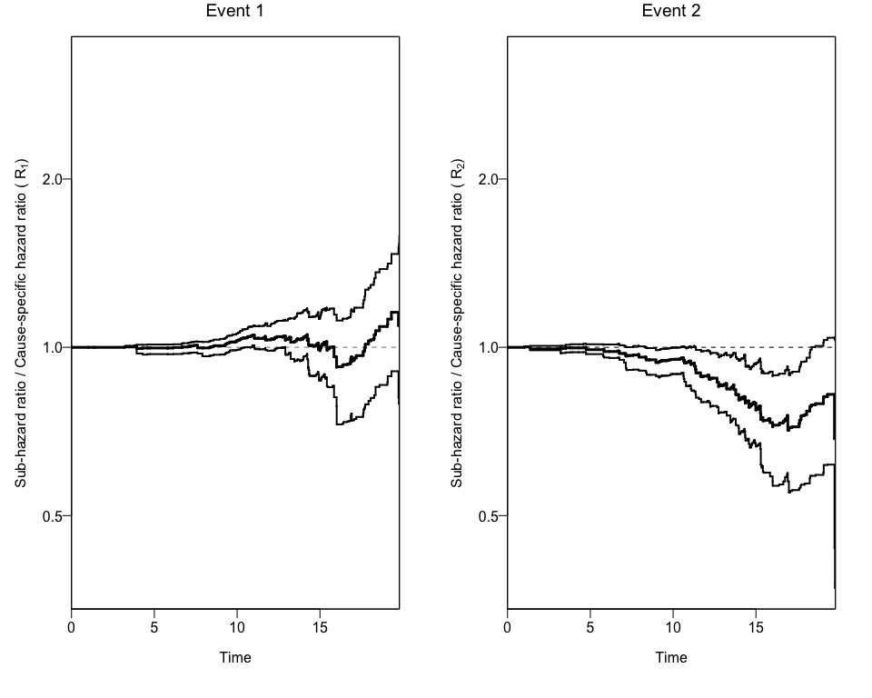 This package aims to estimate Nonparametric Cumulative-Incidence Based Estimation of the Ratios of Sub-Hazard Ratios to Cause-Specific Hazard Ratios.
