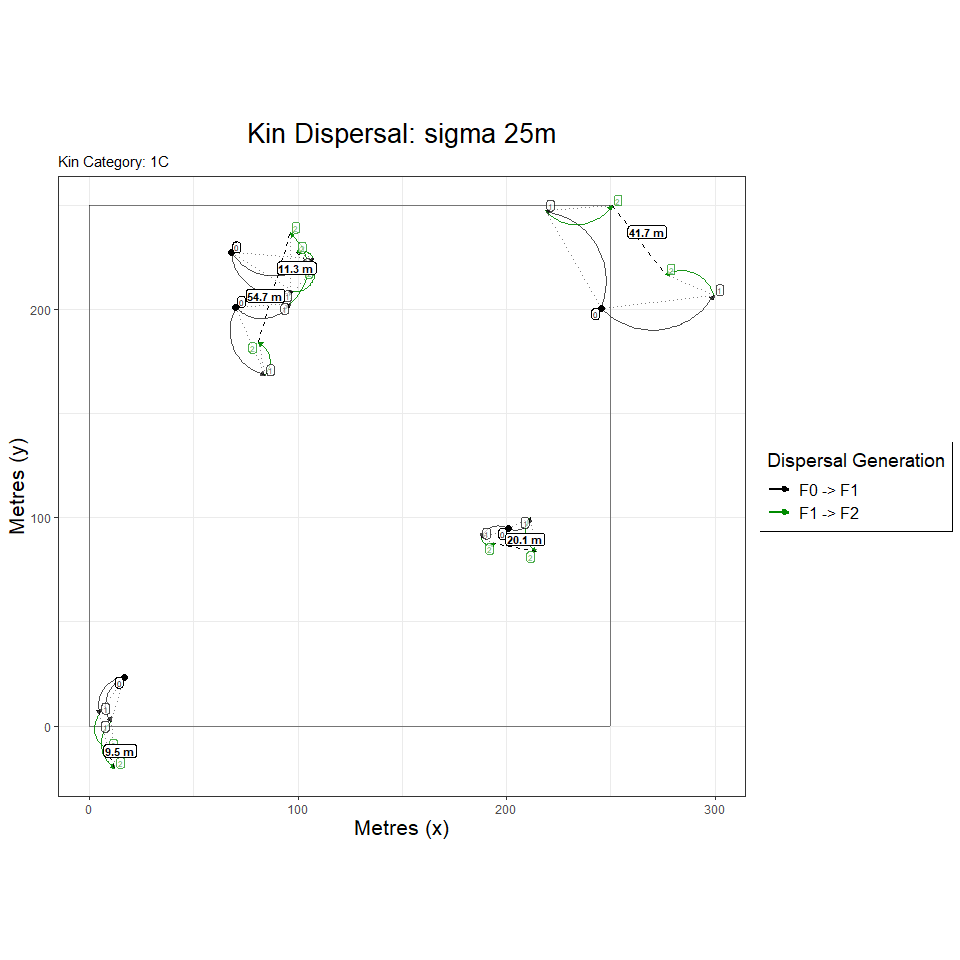 #> KINDISPERSE SIMULATION of KIN PAIRS