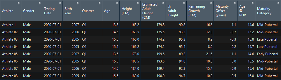 Maturity profiling in young athletes is paramount for talent identification. The concept of biobanding, or grouping of athletes based on their biological development as opposed to their chronological age, has also been widely researched to enable comparison of physical attributes across young athletes as well as better adjustment of the training and competition demands athletes are exposed to.