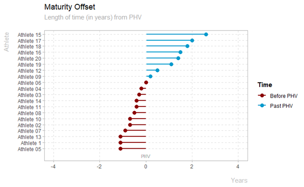Time to PHV Dumbell Plot