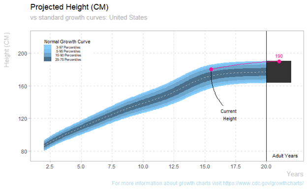 Predicted Adult Height Plot (note the two options depending on cms or inches)
