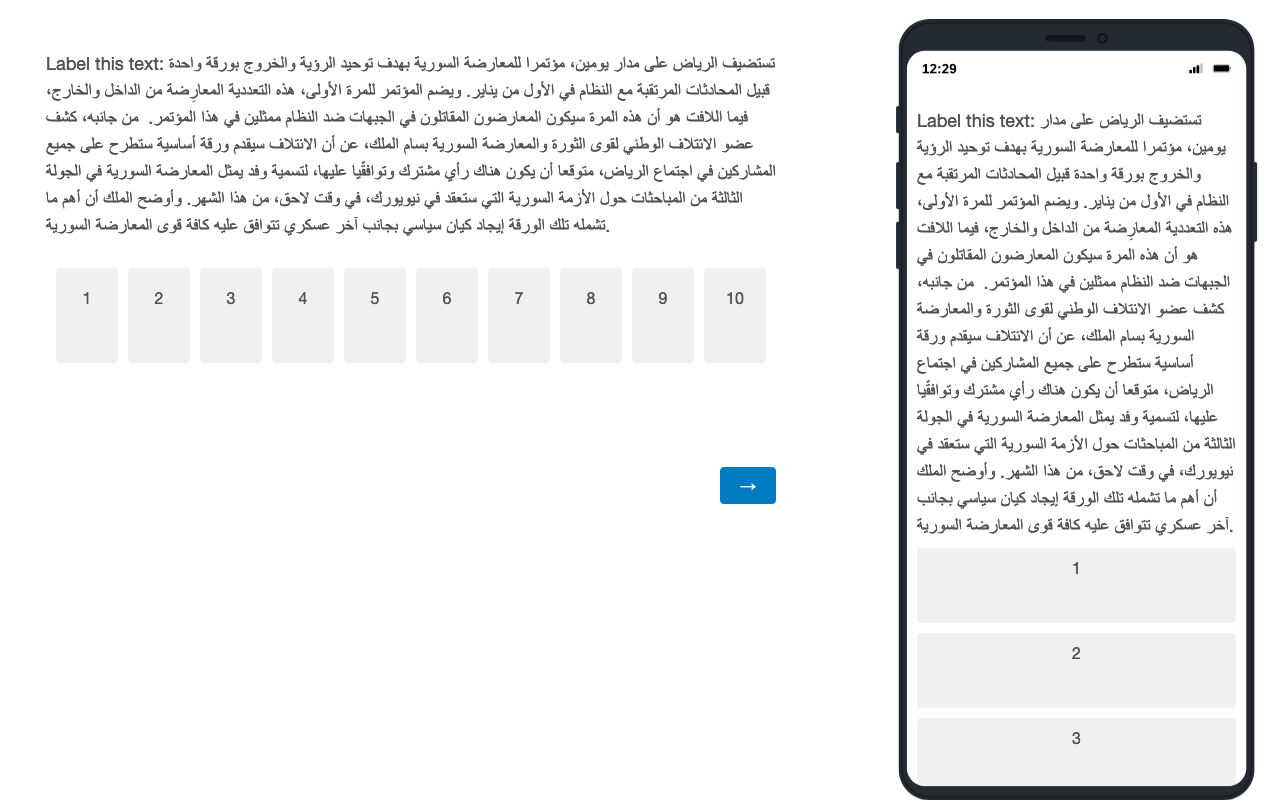 After importing into Qualtrics, we see that the prompt and Arabic text is correctly displayed: