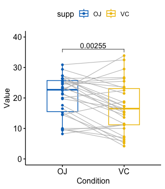 #> 1 supp 1 9 34.866 2.28e-04 * 0.224