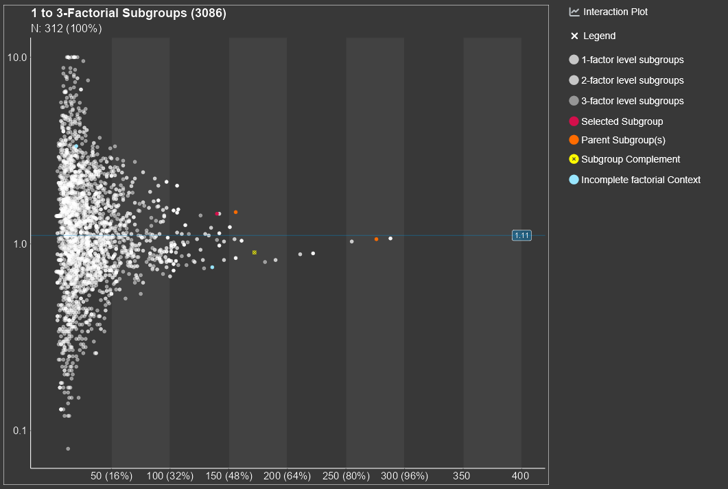 Identifying outcome relevant subgroups has now become as simple as possible! The formerly lengthy and tedious search for the needle in a haystack is replaced by a single, comprehensive and coherent presentation.