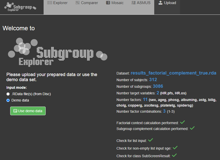 The third function starts the shiny application Subgroup Explorer. In