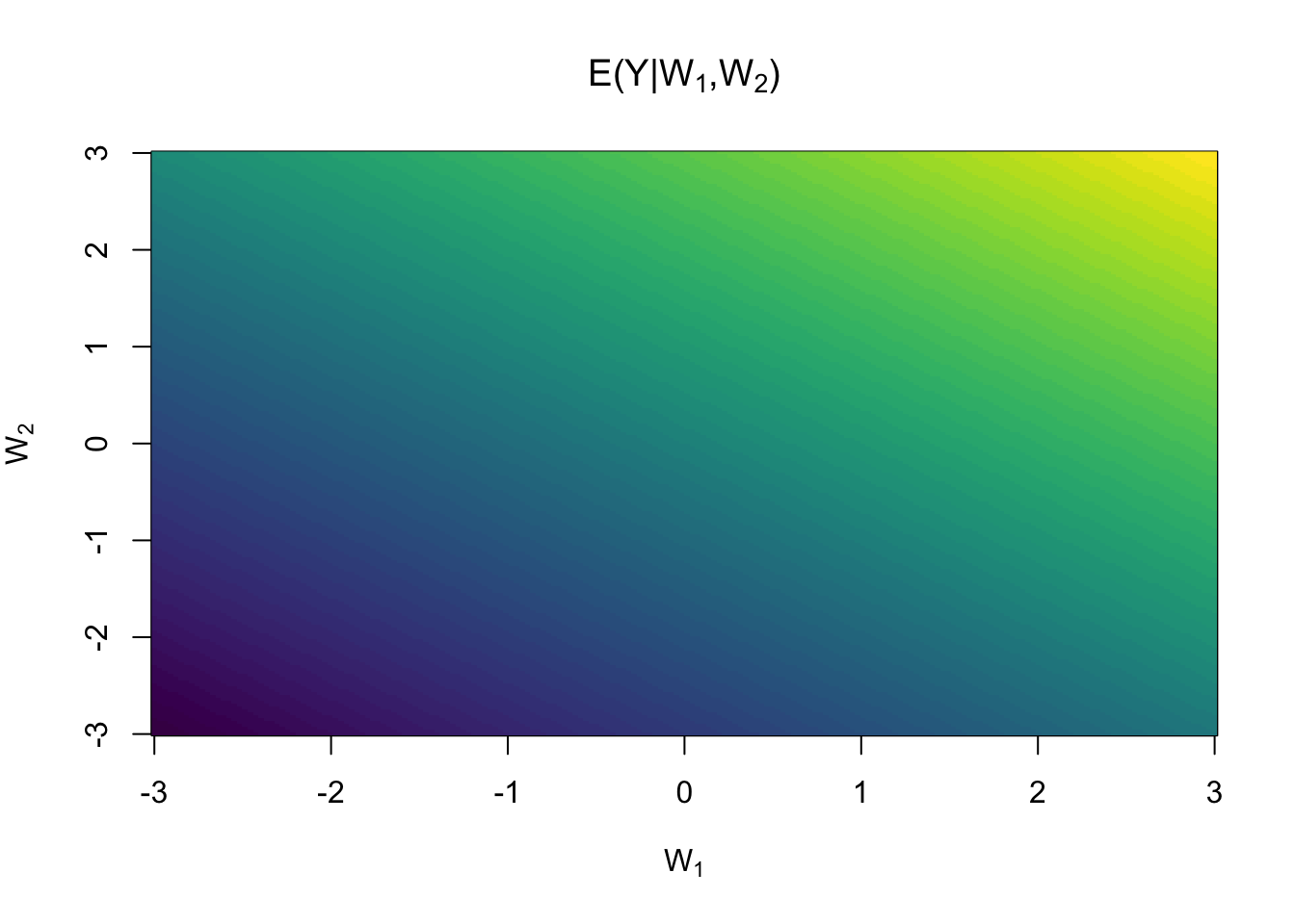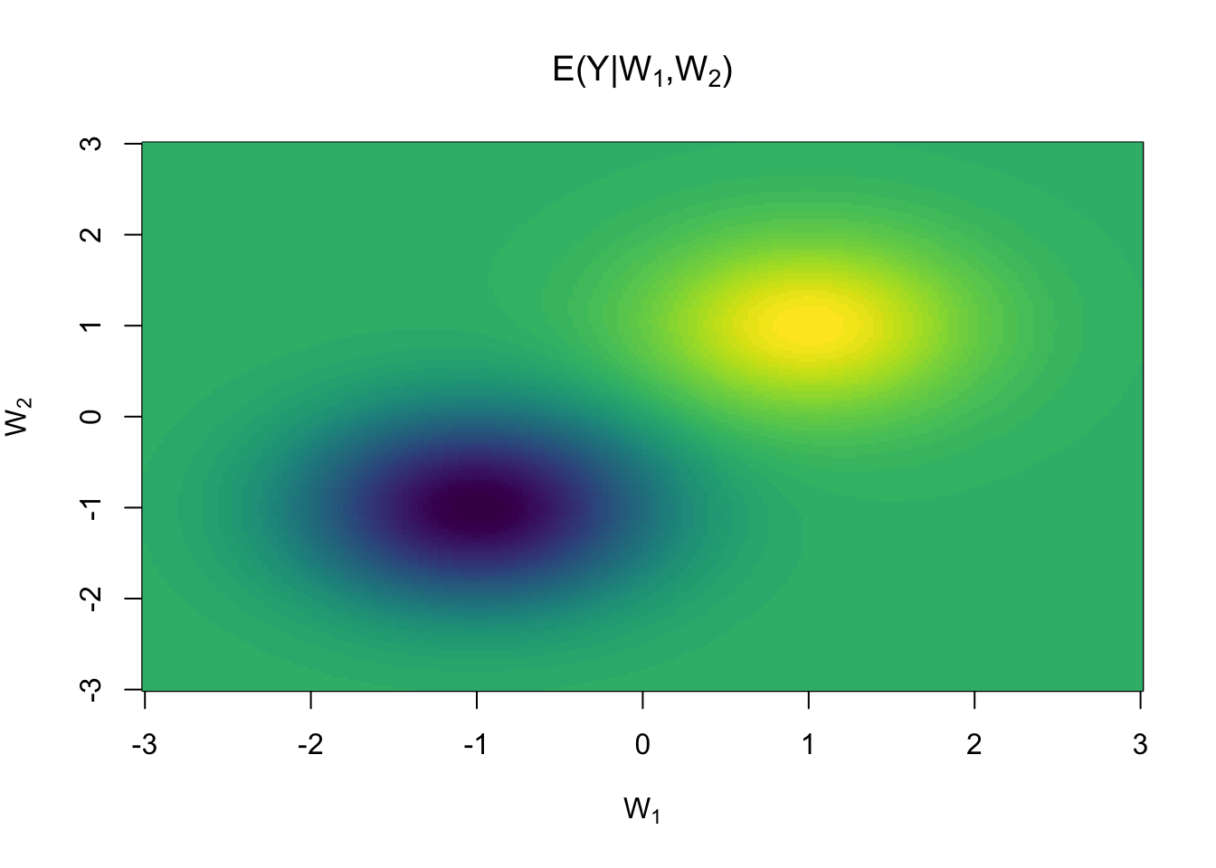 main=expression(paste("E(Y|",W[1],",",W[2],")")),